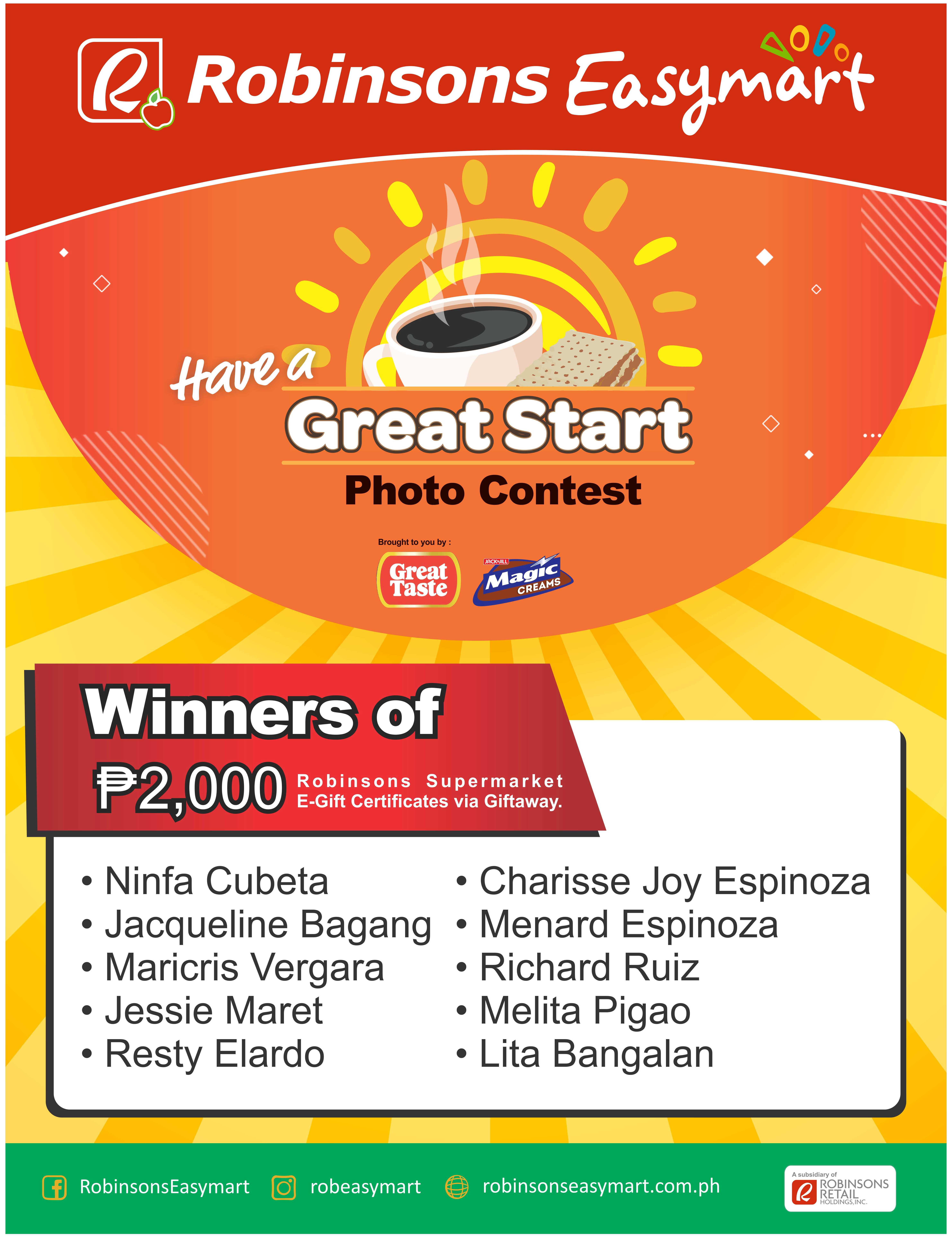 CONGRATULATIONS to the winners of theĀ Have a Great Start Photo Contest by URC! Please expect a message from our partners regarding your prizes!